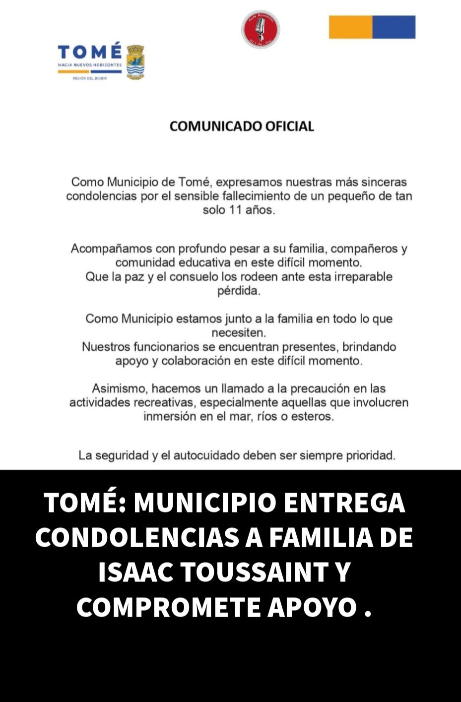 TOMÉ: MUNICIPIO ENTREGA CONDOLENCIAS A FAMILIA DE ISAAC TOUSSAINT Y COMPROMETE APOYO .