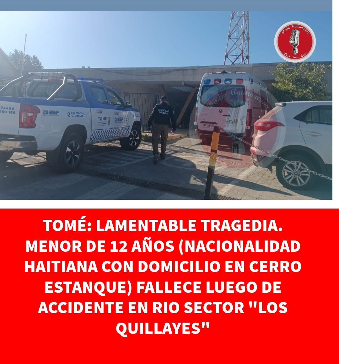 TOMÉ: LAMENTABLE TRAGEDIA. MENOR DE 12 AÑOS (NACIONALIDAD HAITIANA CON DOMICILIO EN CERRO ESTANQUE) FALLECE LUEGO DE ACCIDENTE EN RIO SECTOR «LOS QUILLAYES»
