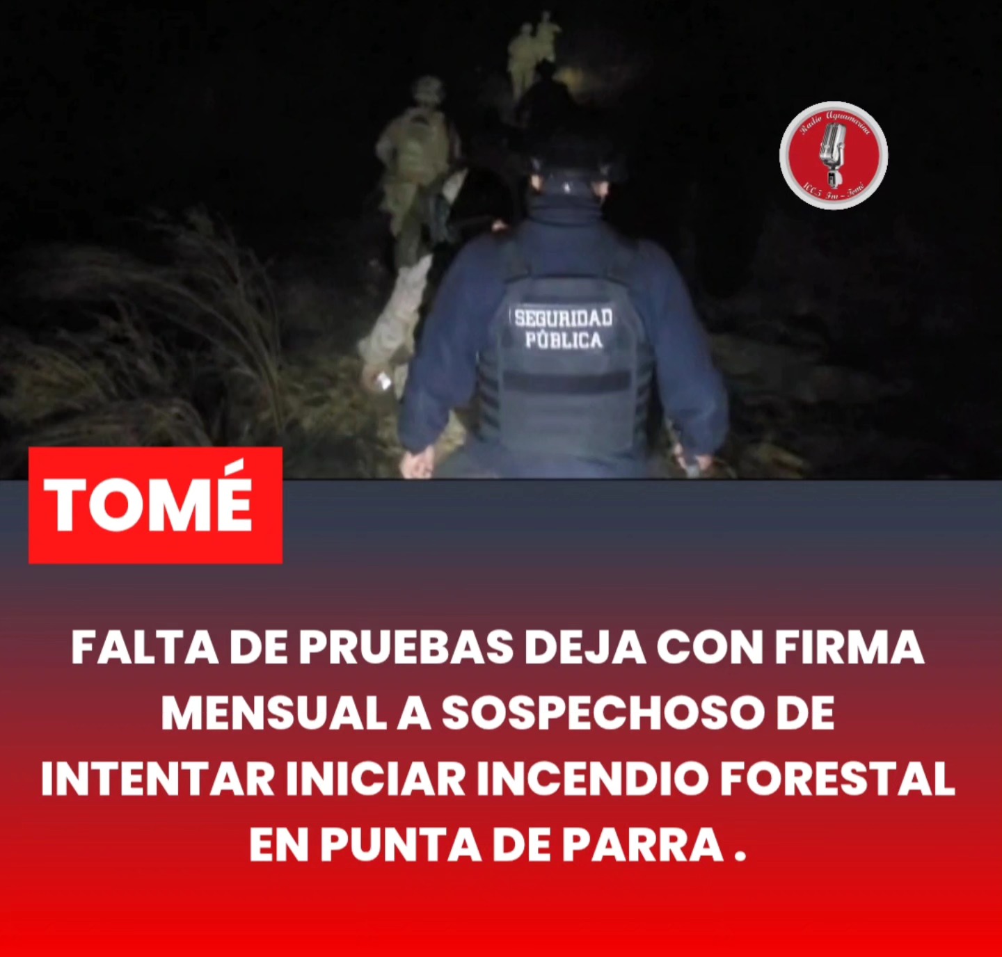 TOMÉ: FALTA DE PRUEBAS DEJA CON FIRMA MENSUAL A IMPUTADO DE INTENTAR INICIAR INCENDIO FORESTAL EN PUNTA DE PARRA .